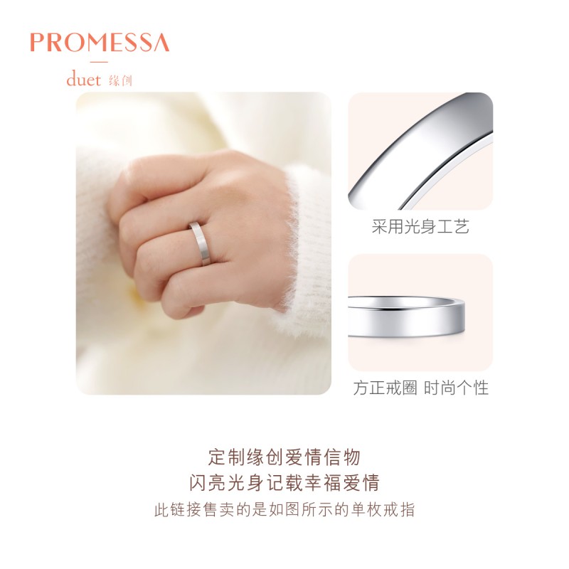 周生生PROMESSA缘创系列Pt950铂金戒指结婚对戒素圈91569R