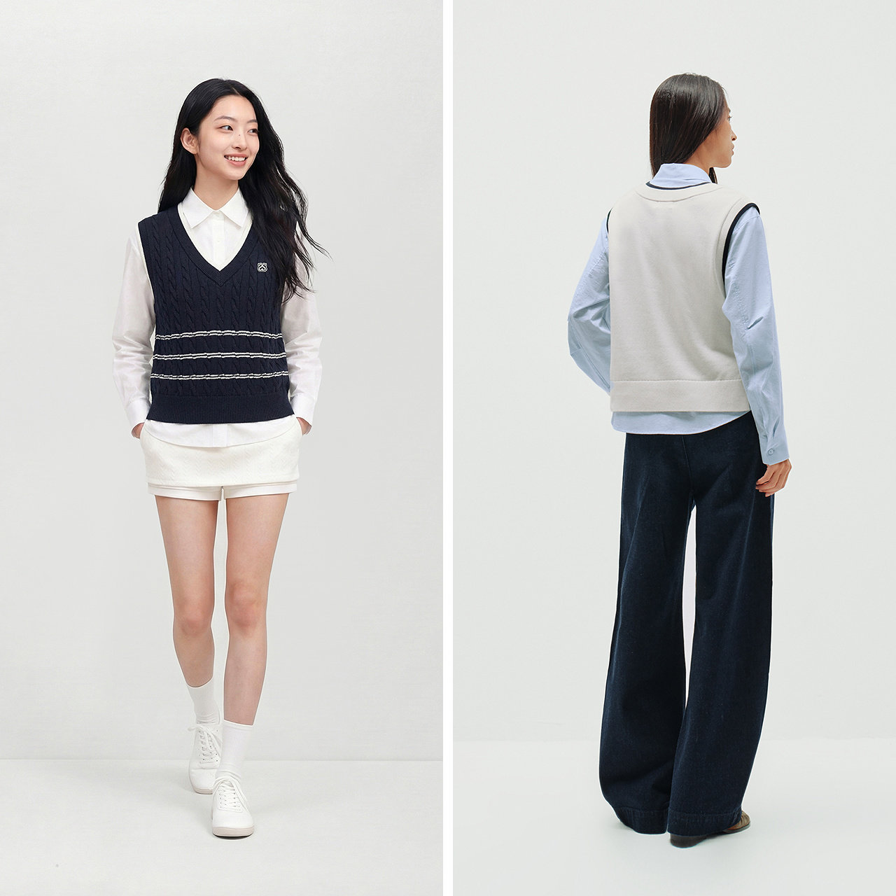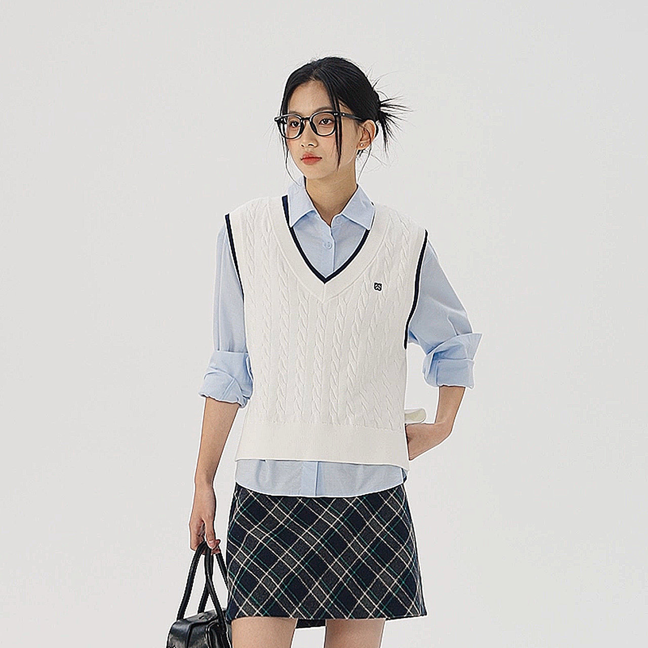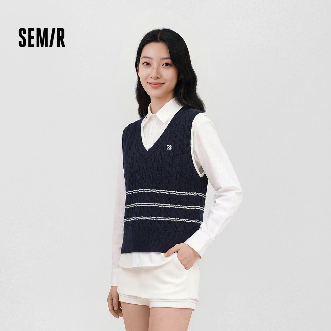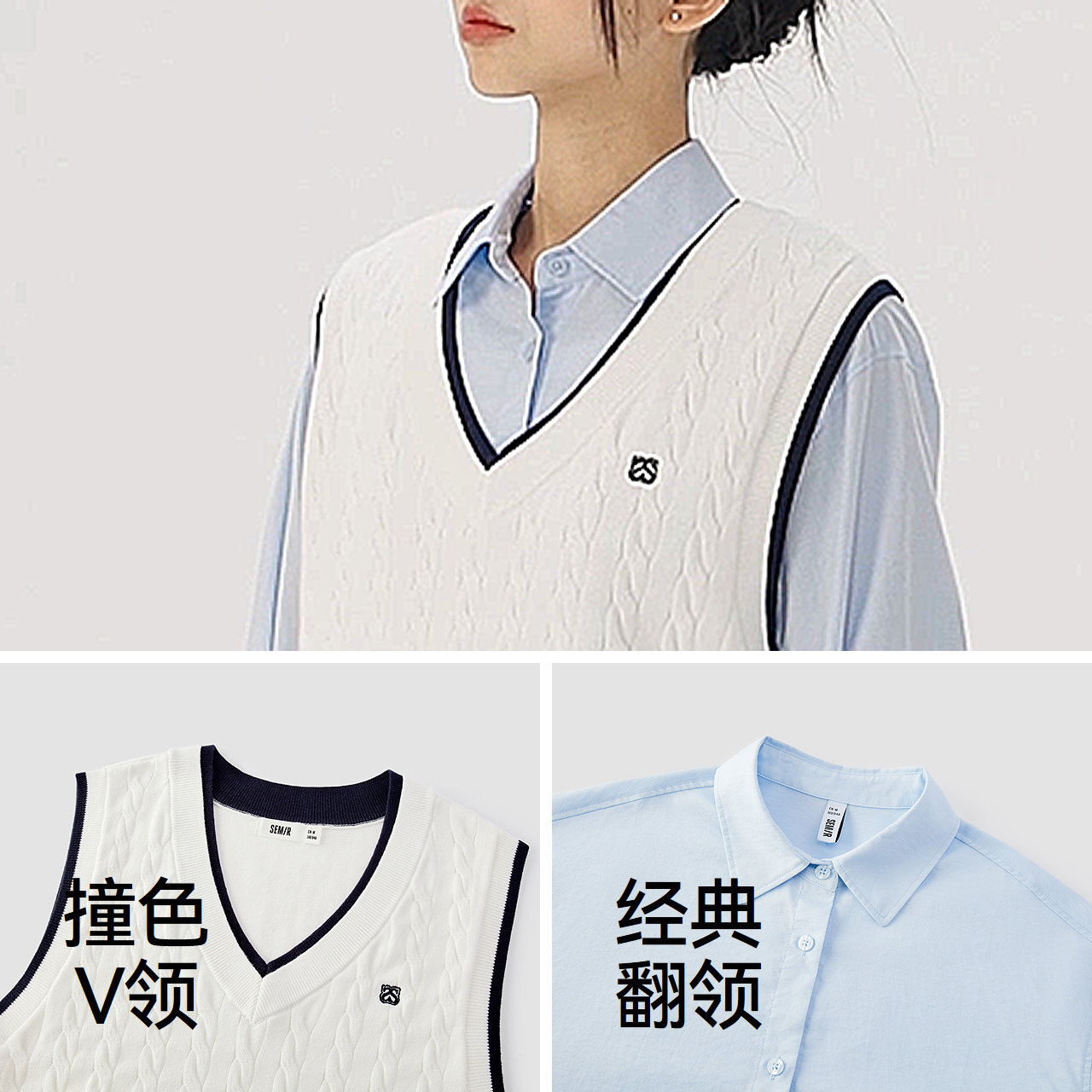 商场同款|森马长袖衬衫女春季肌理衬衣V领绞花背心2026新款两件套