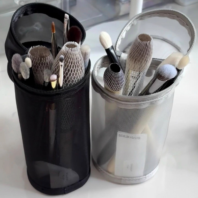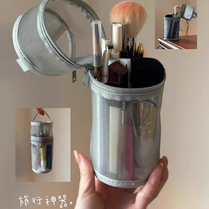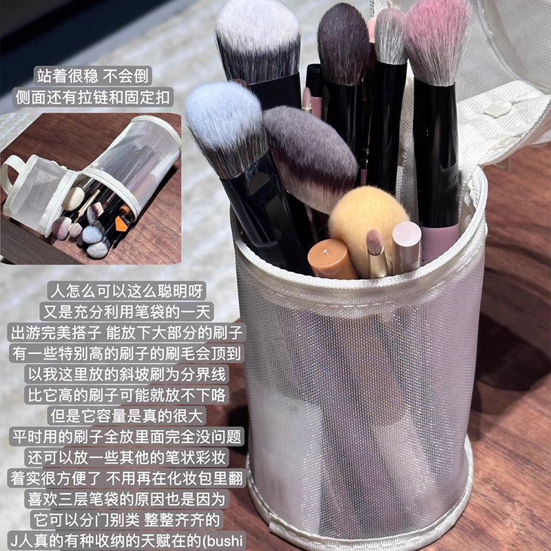 现货 旅行搭档!化妆刷包立式收纳包便携透明大容量两用拆卸笔筒