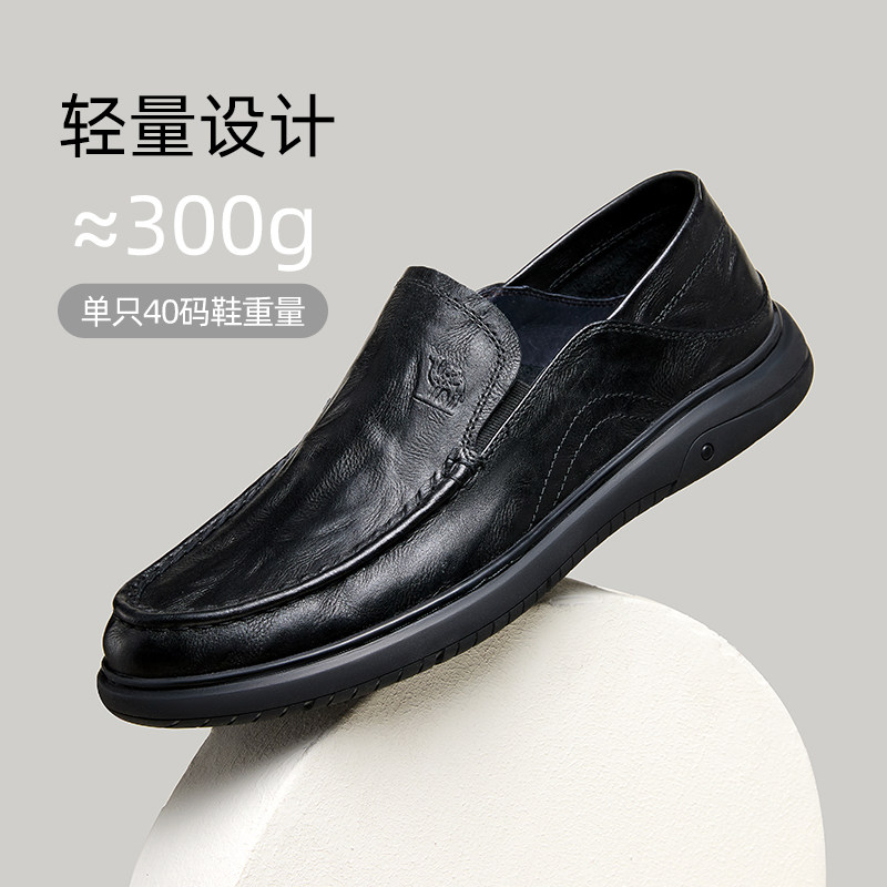 奥康官方男鞋春秋季真皮商务休闲皮鞋时尚套脚平底脚蹬舒适爸爸鞋