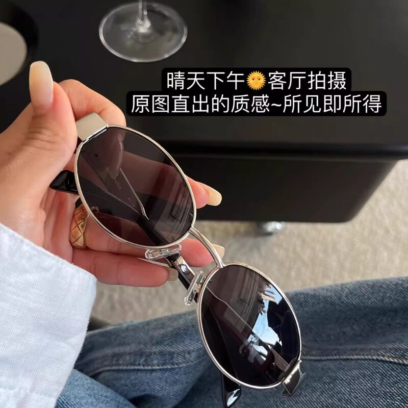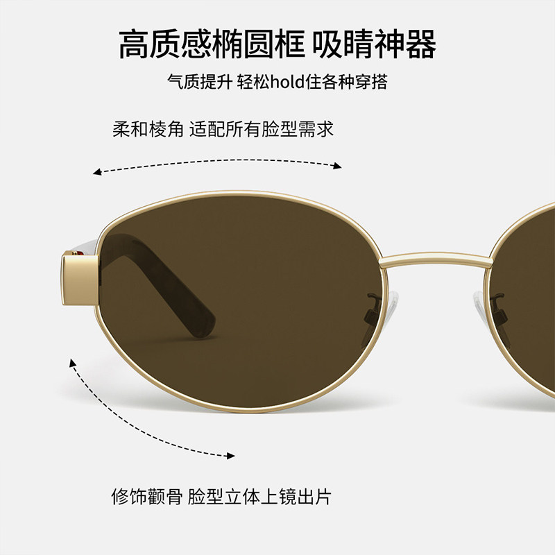 2026新款港式老钱风墨镜女时尚复古椭圆金属框眼镜偏光太阳眼镜男