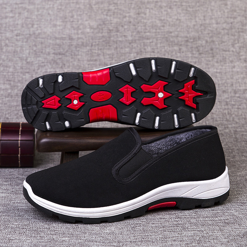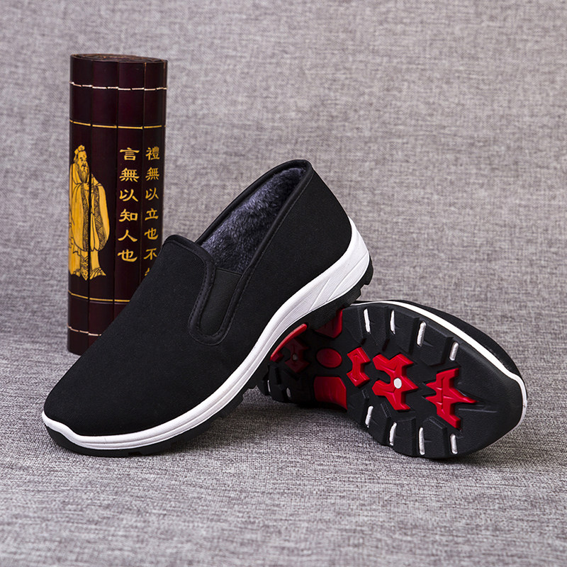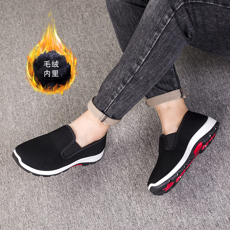 老北京布鞋男款登山底一脚蹬保暖工作防滑加绒加厚冬季爸爸棉鞋男