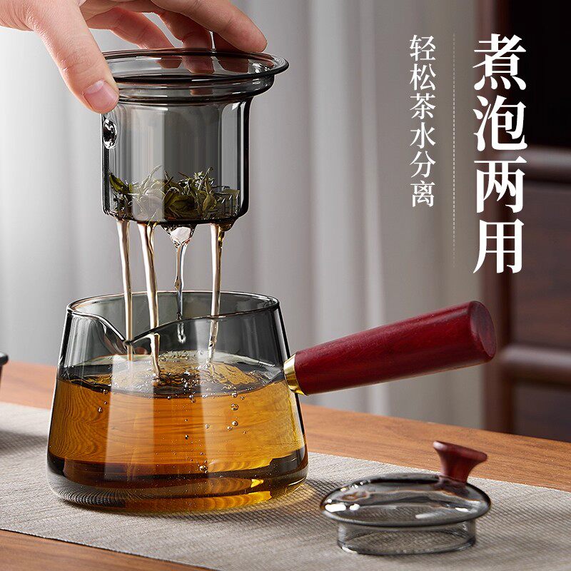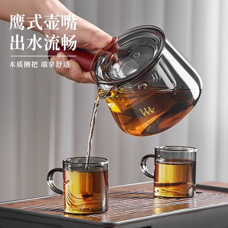 家用侧把茶壶玻璃煮茶壶新款家用茶水分离大容量耐高温泡茶壶套装