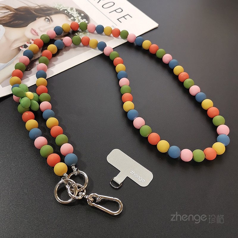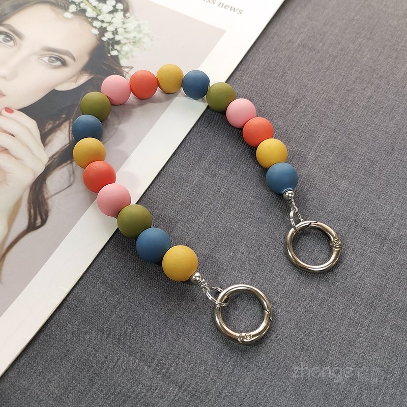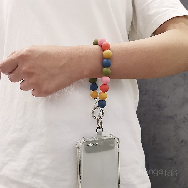 手机挂绳磨砂彩珠挂链明星同款糖果色手机链短款时尚百搭女手提链