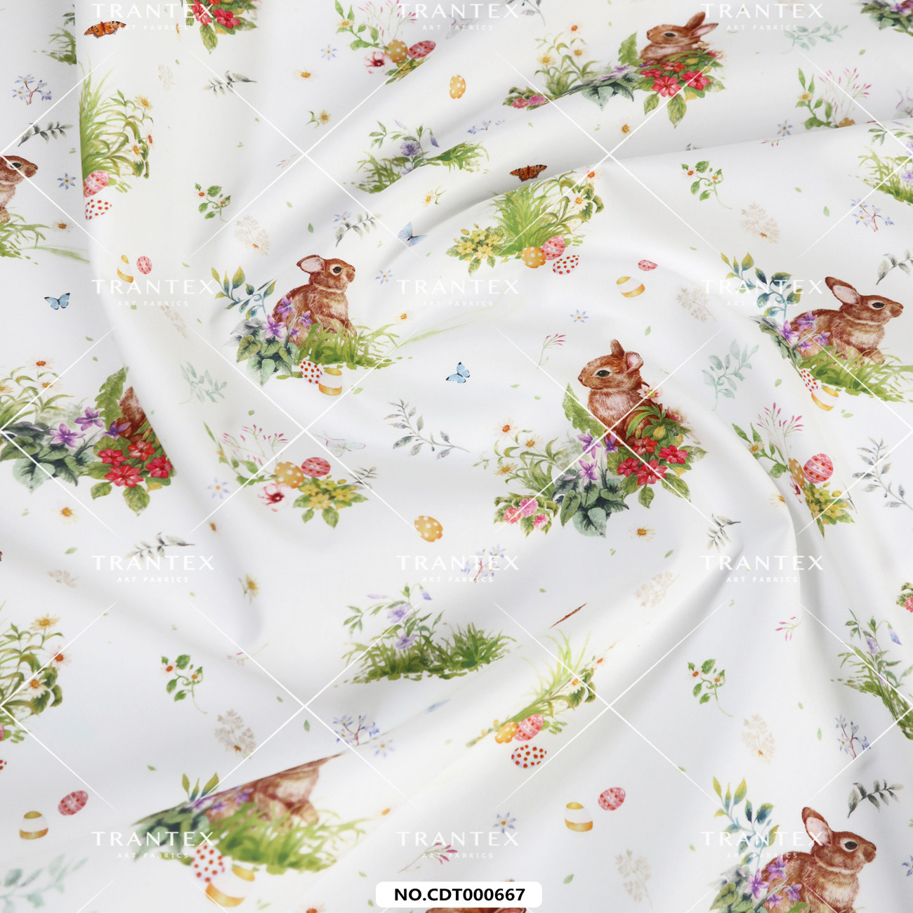 天冉艺纺80s加密长绒棉全棉童装可爱春夏印花春夏布料面料草地兔