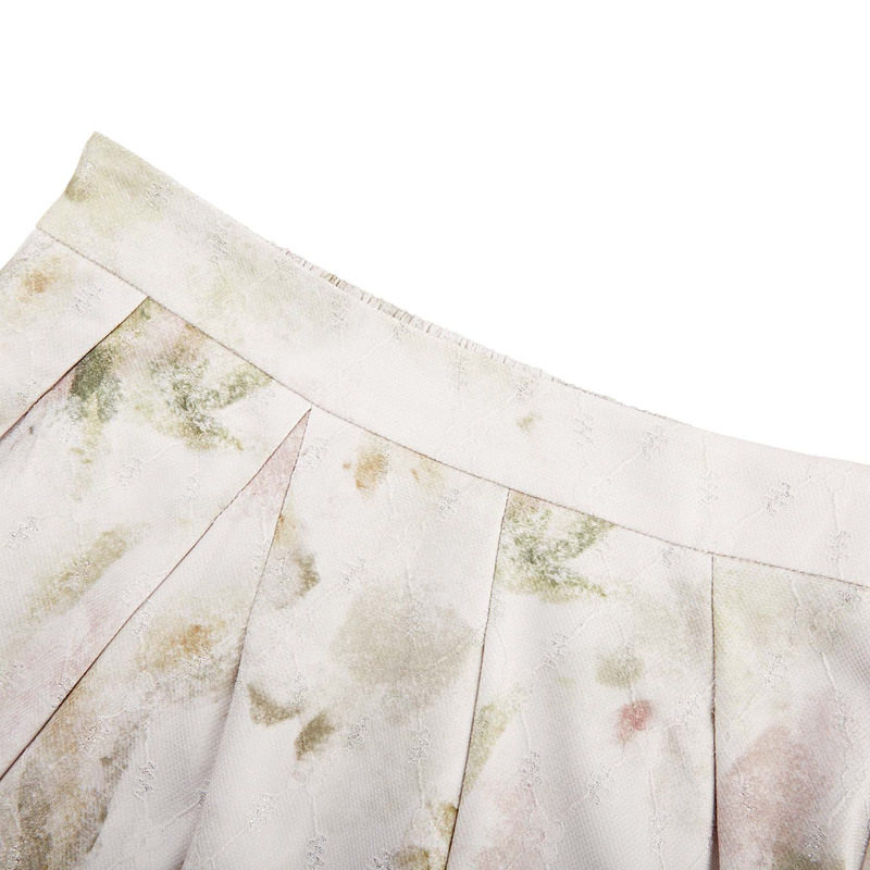 百褶长裙 清新印花 不规则摆