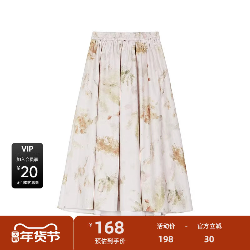 商场同款森马半身裙女磨毛纯棉长裙2025秋新款纯色伞裙百搭20002