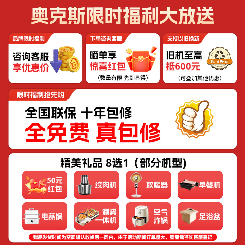 奥克斯空调挂机1.5匹新一级变频冷暖节能1匹省电卧室家用空调117