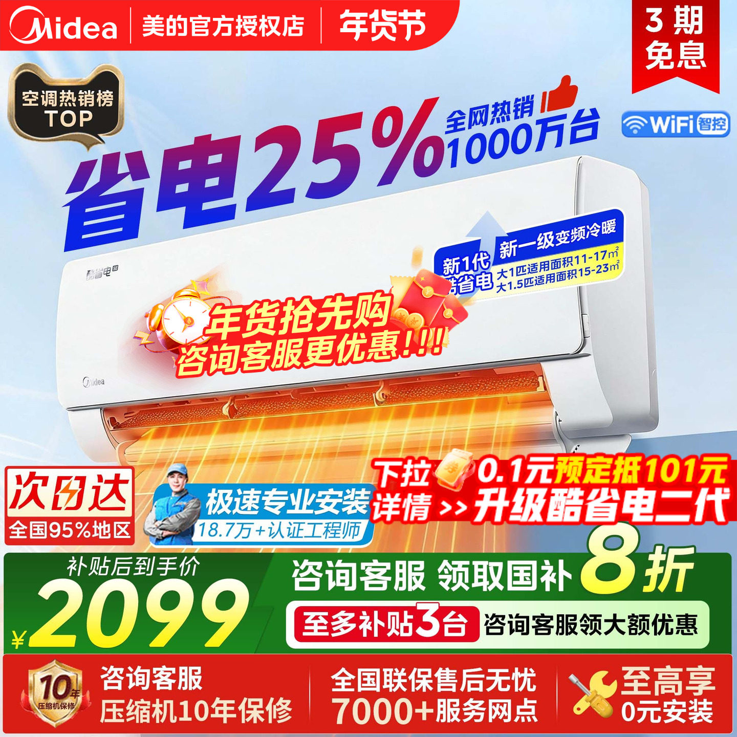 美的空调酷省电Pro大1匹1.5匹一级能效变频冷暖家用挂机官方正品
