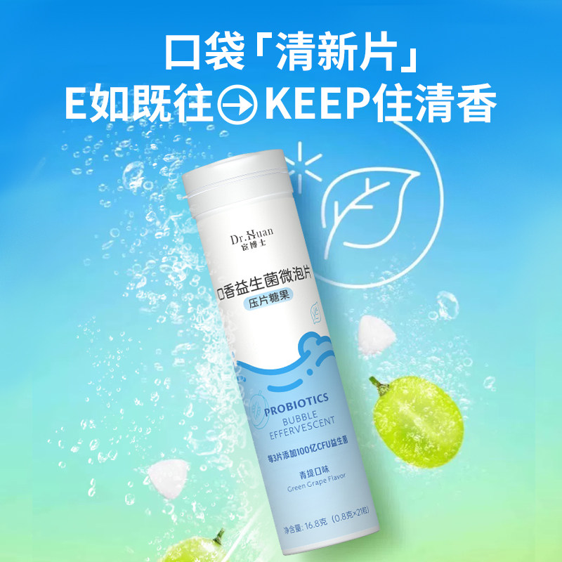 宦博士口香益生菌微泡片糖果含片21粒/瓶桃桃乌龙泡泡柠茶青提