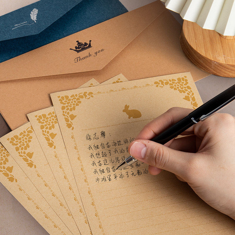 马卡龙色系信封信纸套装里纸加厚精美烫金硬卡纸纯色西式复古空白手写信笺商务请柬邀请函贺卡男女友表白情书
