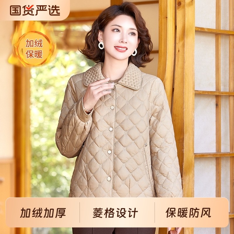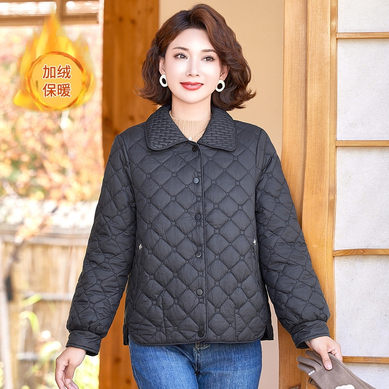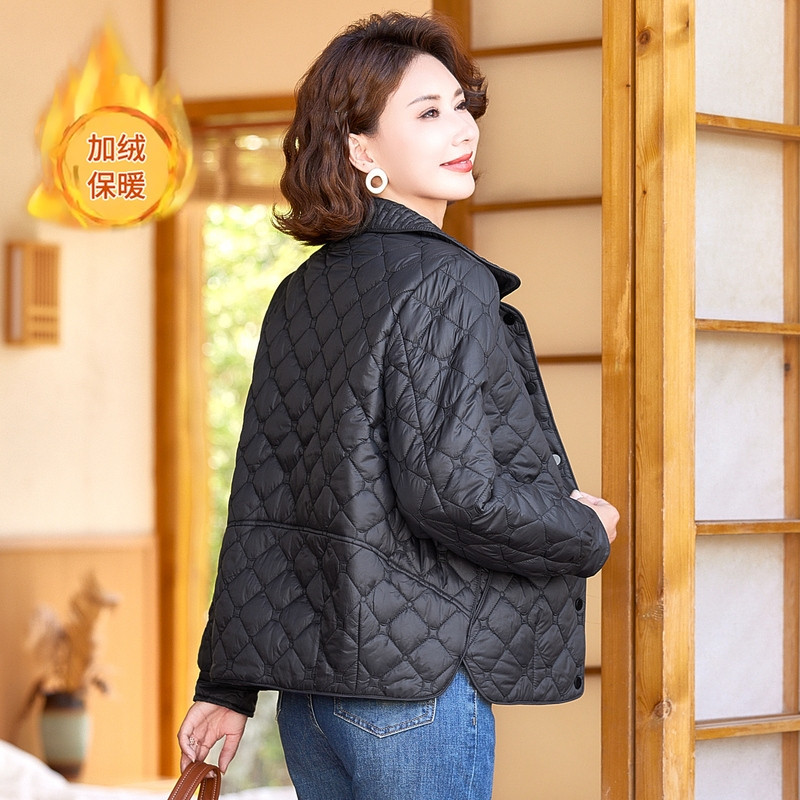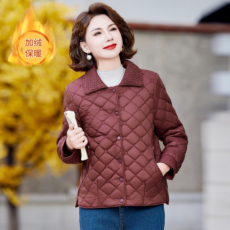 妈妈秋冬装德绒保暖棉衣短款加厚内胆中老年人女薄款小棉袄可外穿