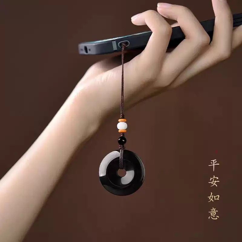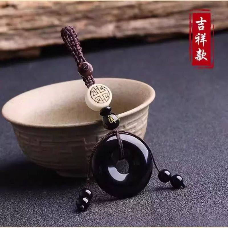 天然黑曜石平安扣项链男女款简约钥匙扣手机挂件配饰百搭挂件饰品