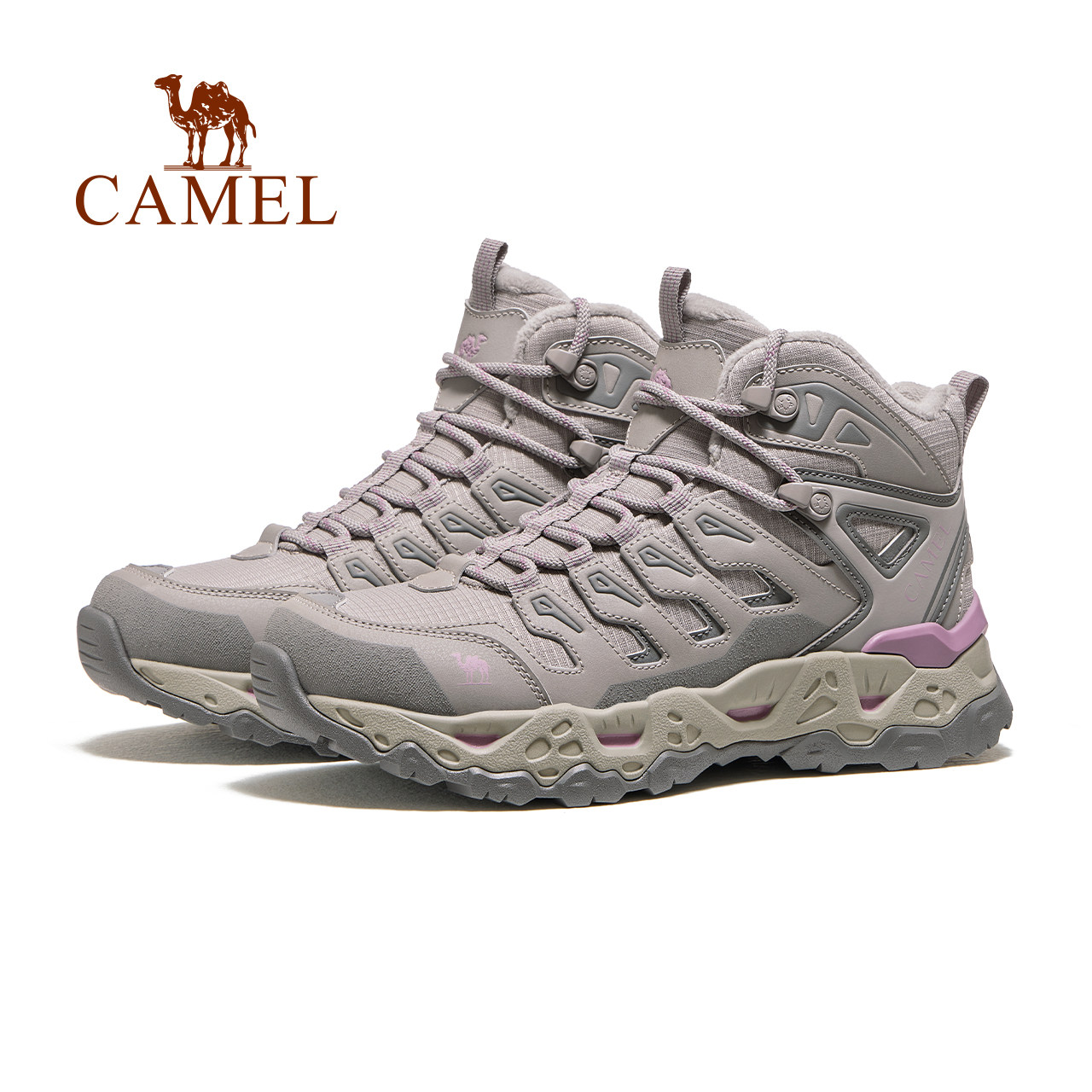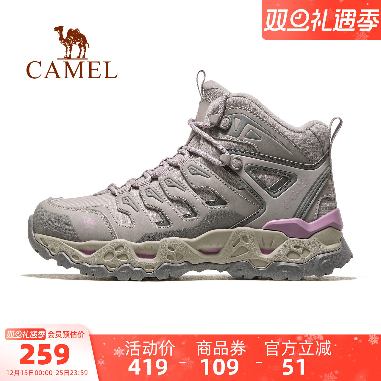 骆驼女鞋2025冬季新款户外加绒保暖棉鞋户外徒步登山鞋厚底短靴子