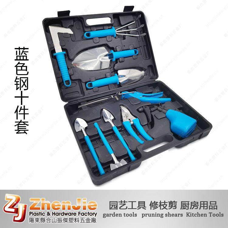 现货新款不锈钢十件套园艺工具套装花园用具铲耙锹剪喷壶园林用品