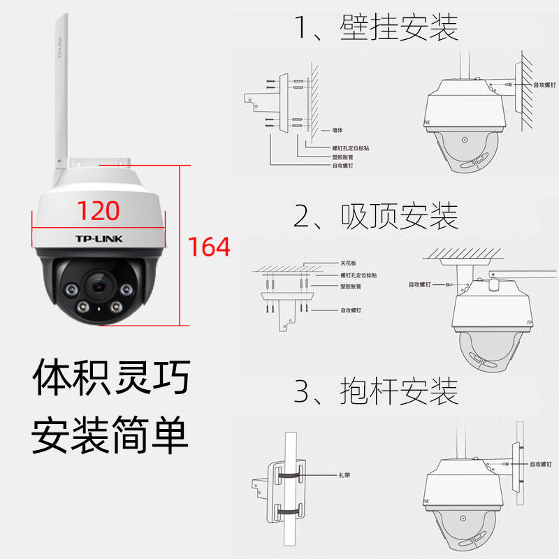 TP-LINK商用高清室外防水防盗摄像头360度全景夜视户外球机4G双摄影头手机远程家用安防门口楼道监控器普联