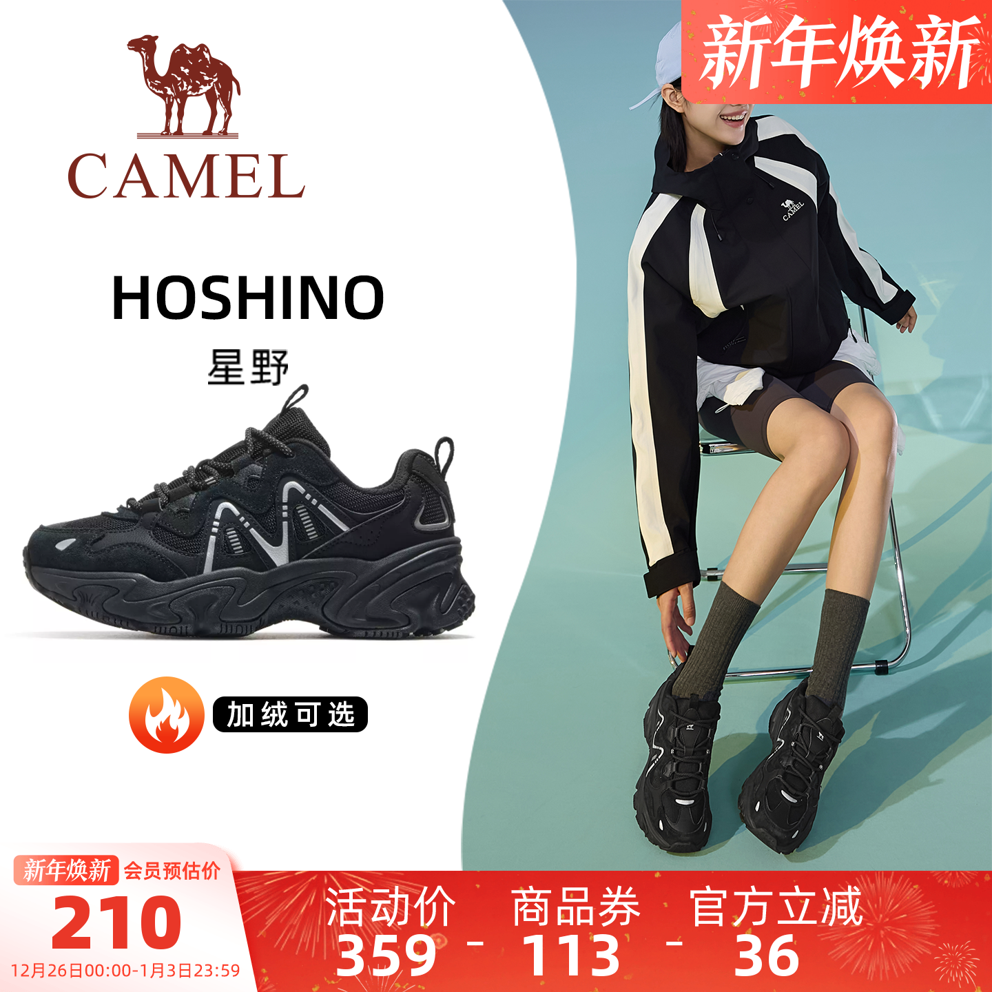 骆驼星野运动鞋女款2025秋冬新款透气女鞋厚底增高老爹鞋休闲鞋子