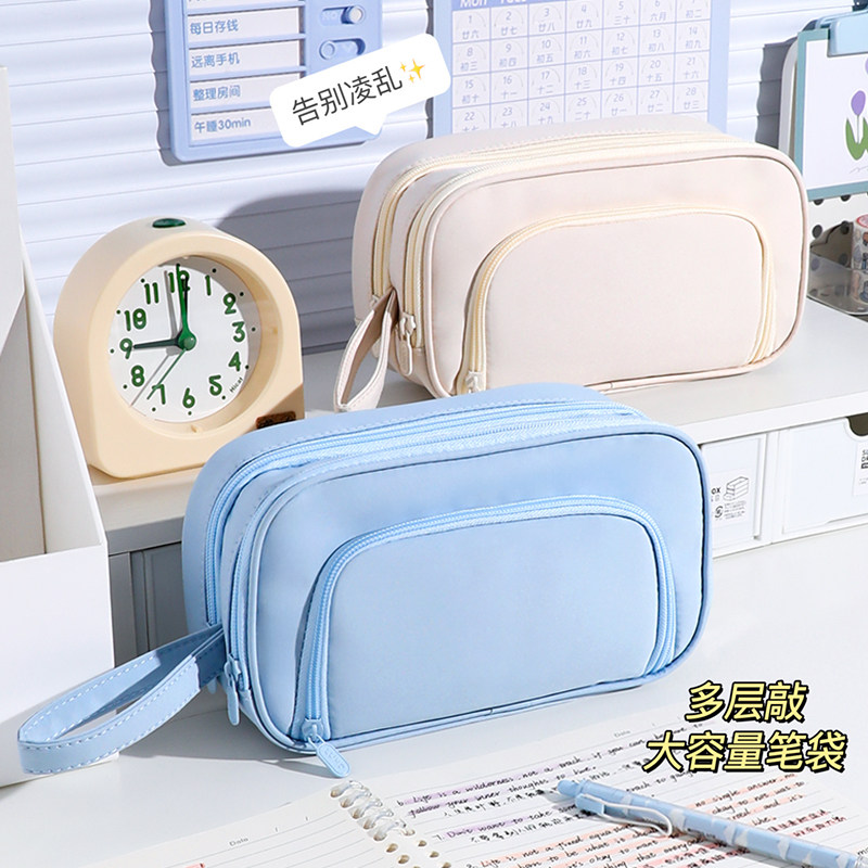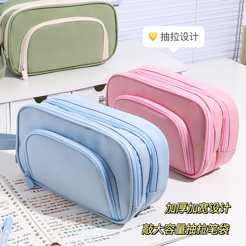 大容量笔袋抽拉式奏折文具袋学生分类手提包文具盒旅行收纳袋子