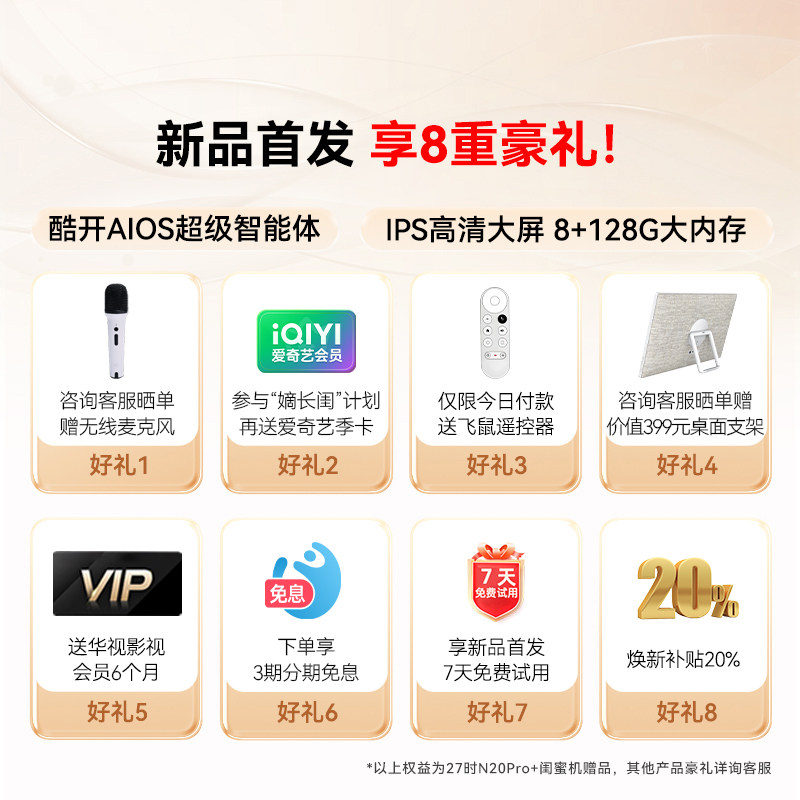 【新品升级】创维多啦闺蜜机27英寸大内存平板K歌移动电视N20Pro