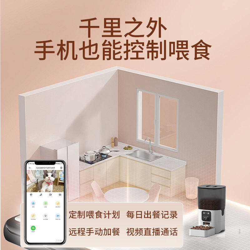 猫狗自动喂食器猫咪宠物智能定时定量投喂器猫粮狗粮喂食机可视频