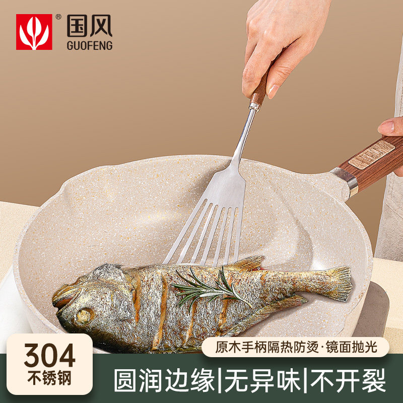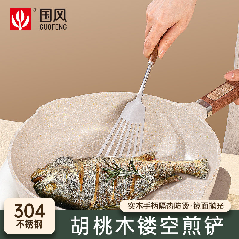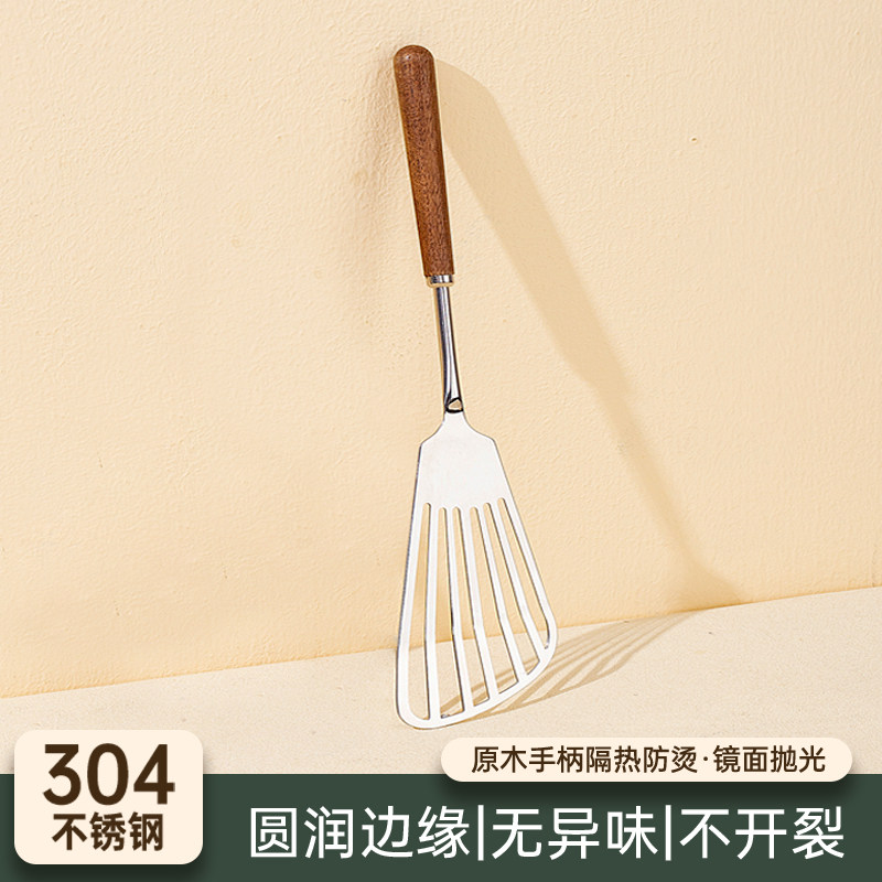 胡桃木蝴蝶铲304不锈钢烙饼专用煎饼铲