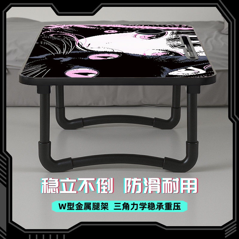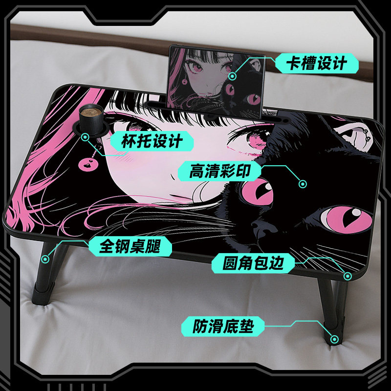 女孩黑猫床上折叠小桌子动漫二次元笔记本电脑桌膝上桌学生宿舍学习桌家用卧室飘窗作业写字桌儿童阅读书桌