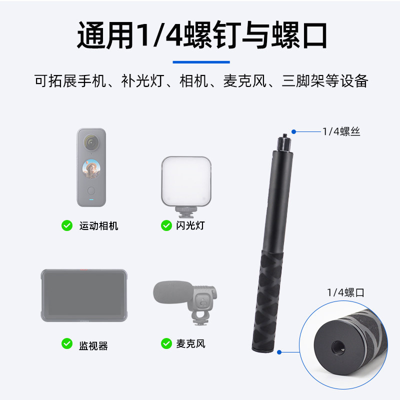 通用金属Insta360onex2/3自拍延长杆多功能便携可伸缩摄影配件