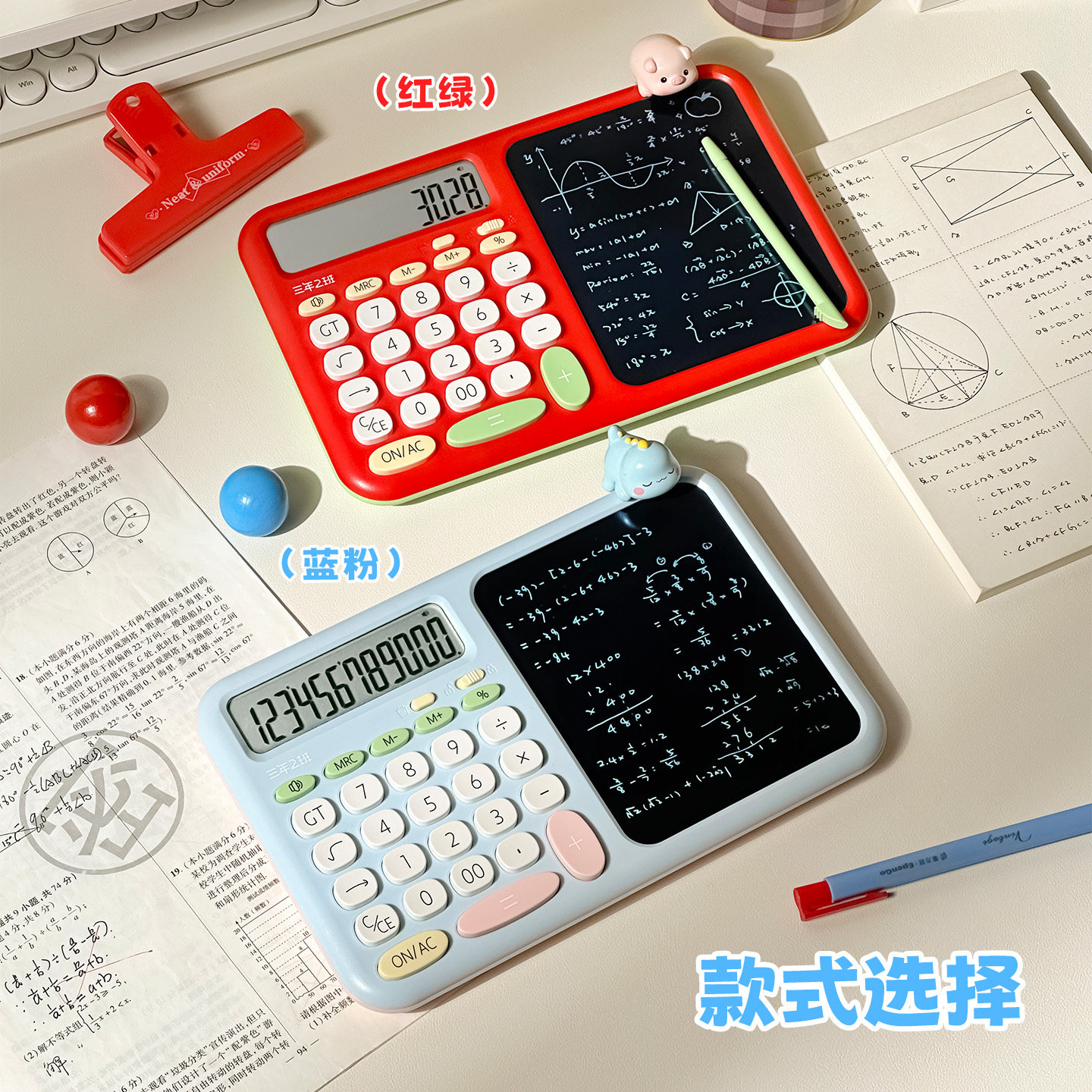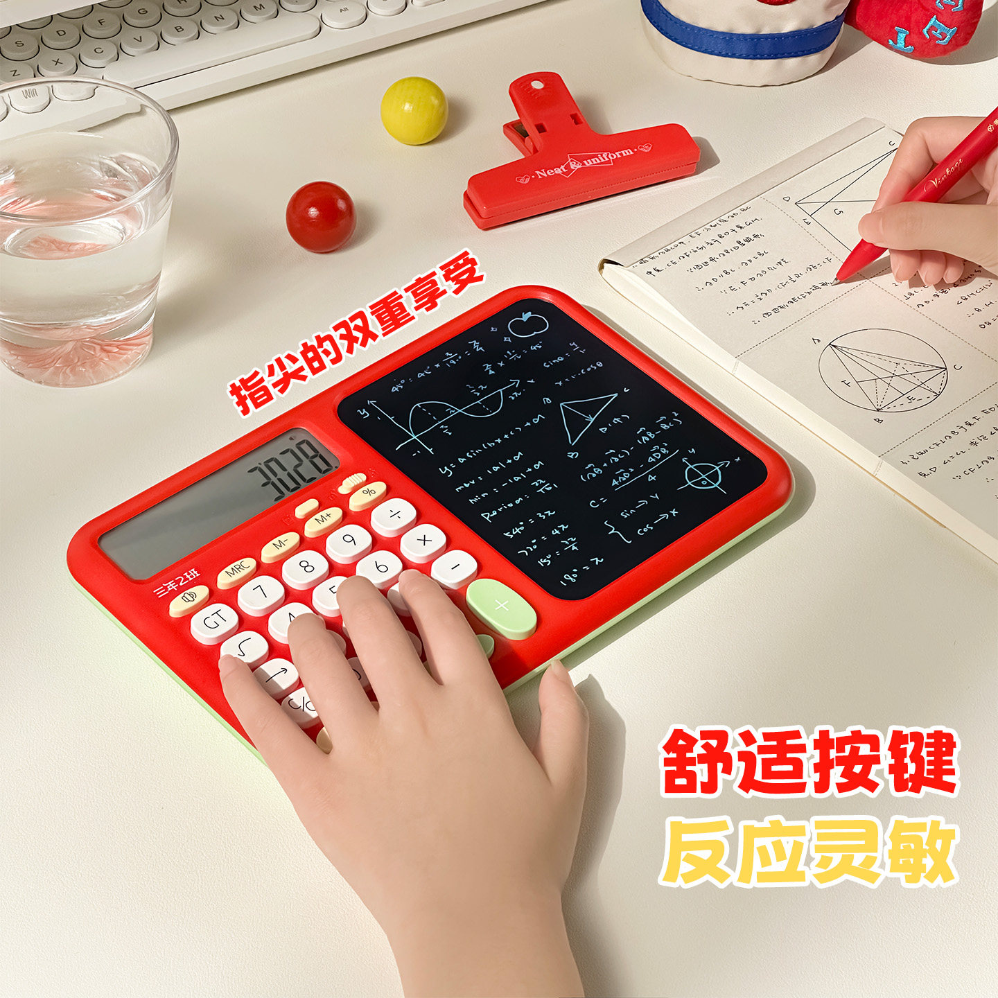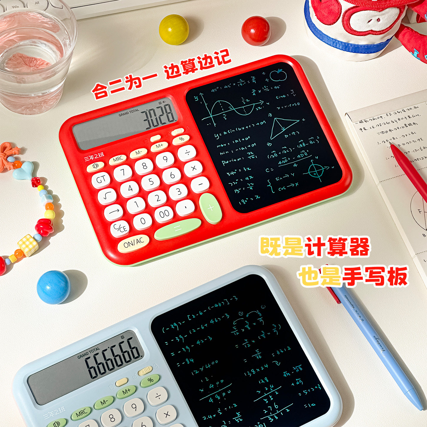 三年二班新款细笔迹手写板计算器二合一高颜值语音计算机女神款