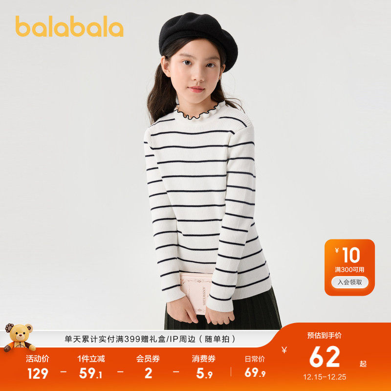 巴拉巴拉童装儿童毛衣女童2025新款秋冬装中大童撞色木耳边针织衫