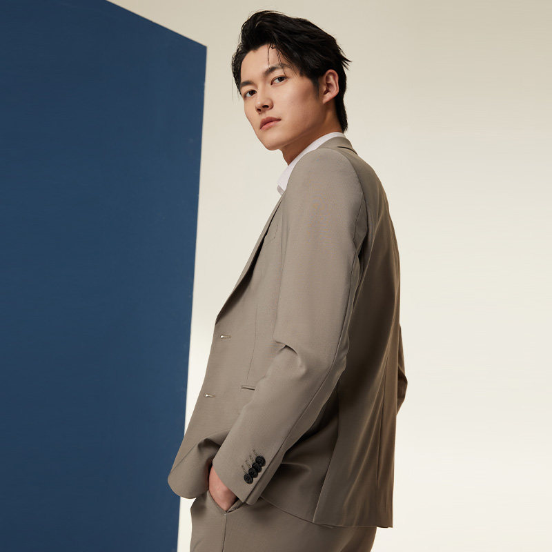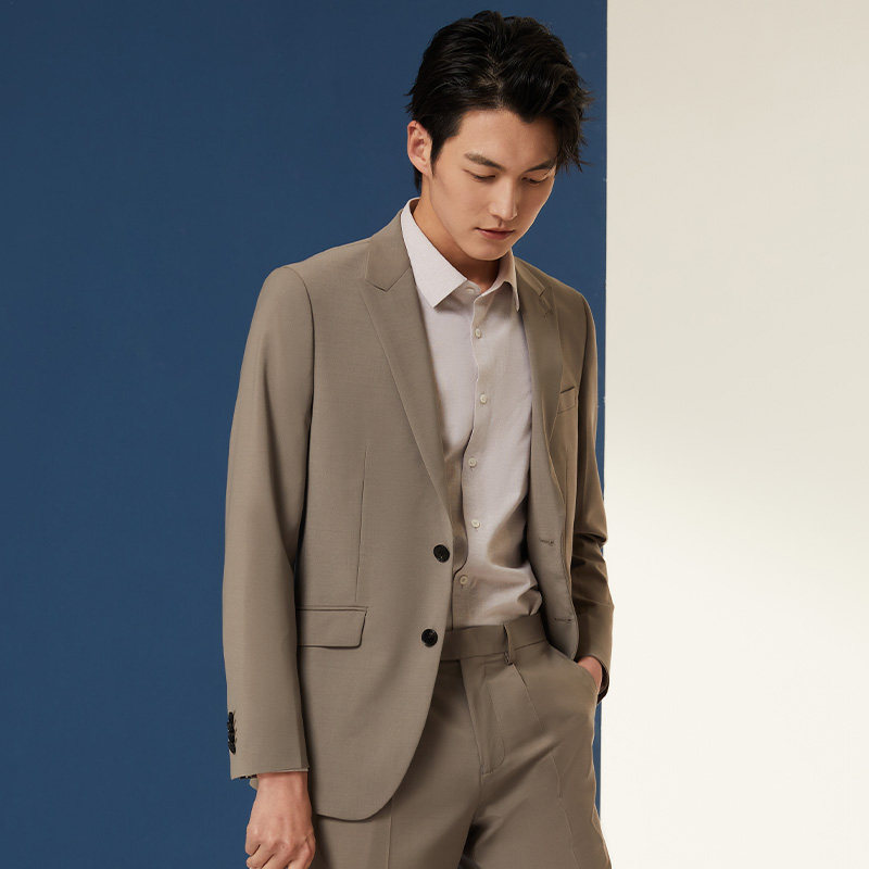 【商场同款】圣得西冬季款时尚粘土色弹力商务休闲西服套装