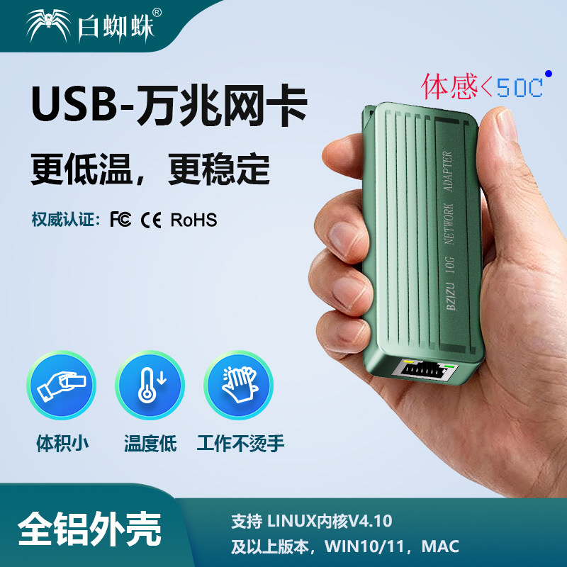 BZIZU USB转10g万兆网卡高速办公有线网卡10000M Realtek/RTL8159芯电竞type-cRJ45电口拓展群晖nas雷电3网卡