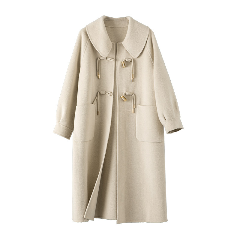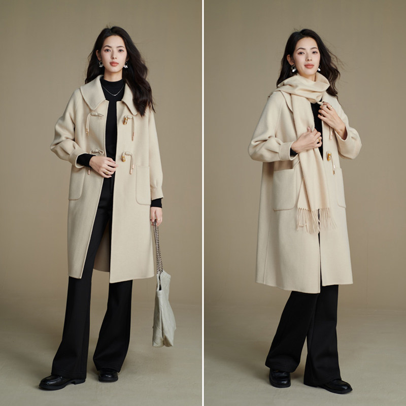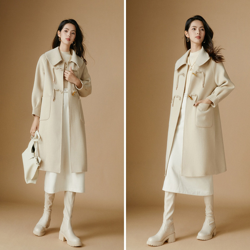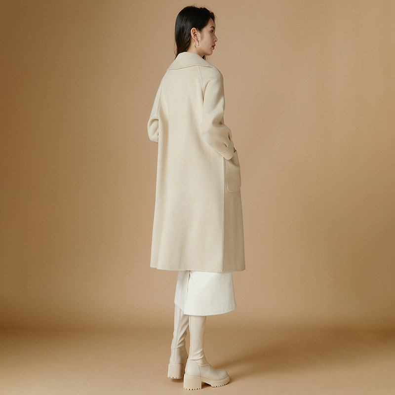 晚白【断码清仓】2025冬翻领厚外套双面呢大衣女