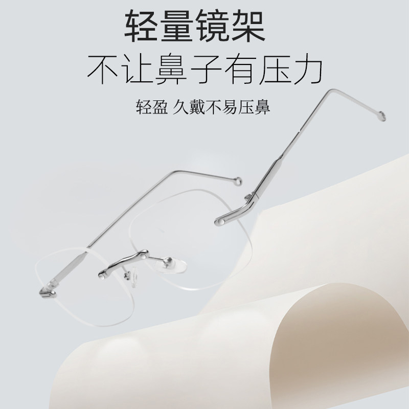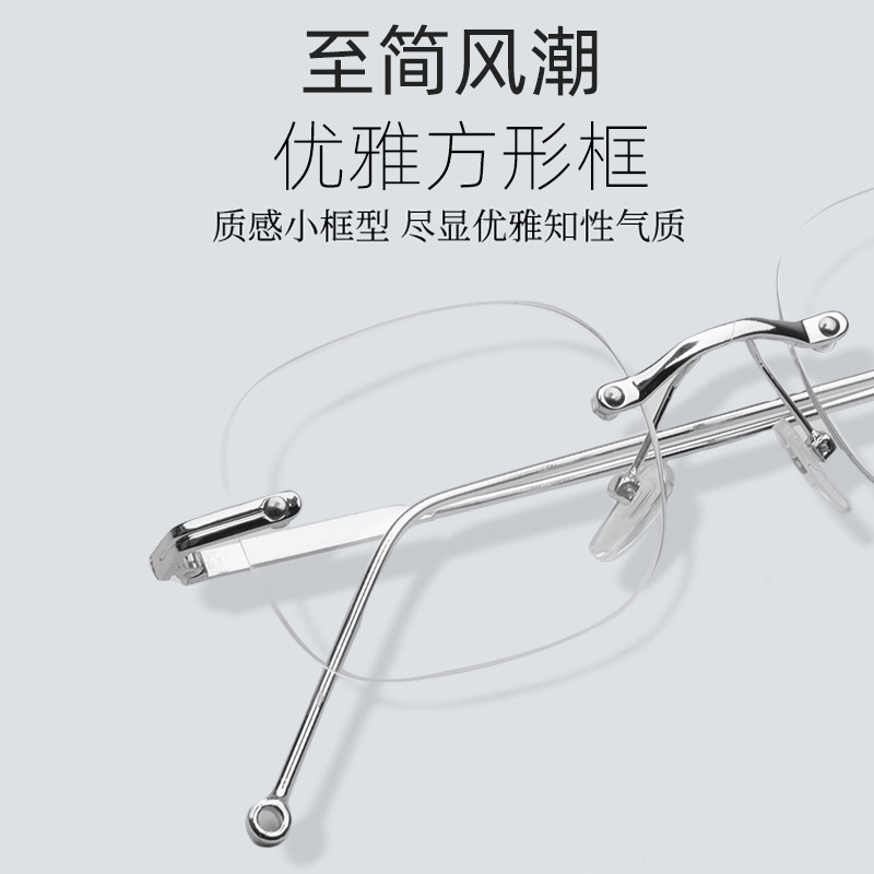目戏无框眼镜女近视可配度数可选蔡司镜片无边框眼镜框镜架23006