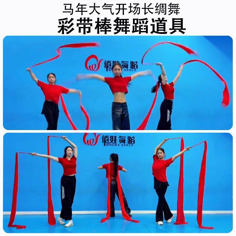 策马扬鞭红缎带舞蹈道具带棒彩绸大红色色彩带年会开场舞跳舞表演