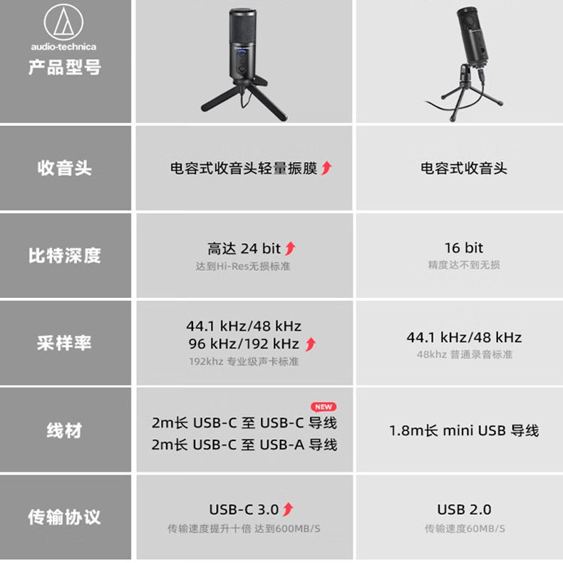 铁三角ATR2500X电容麦克风话筒USB直连手机电脑直播录音有声书