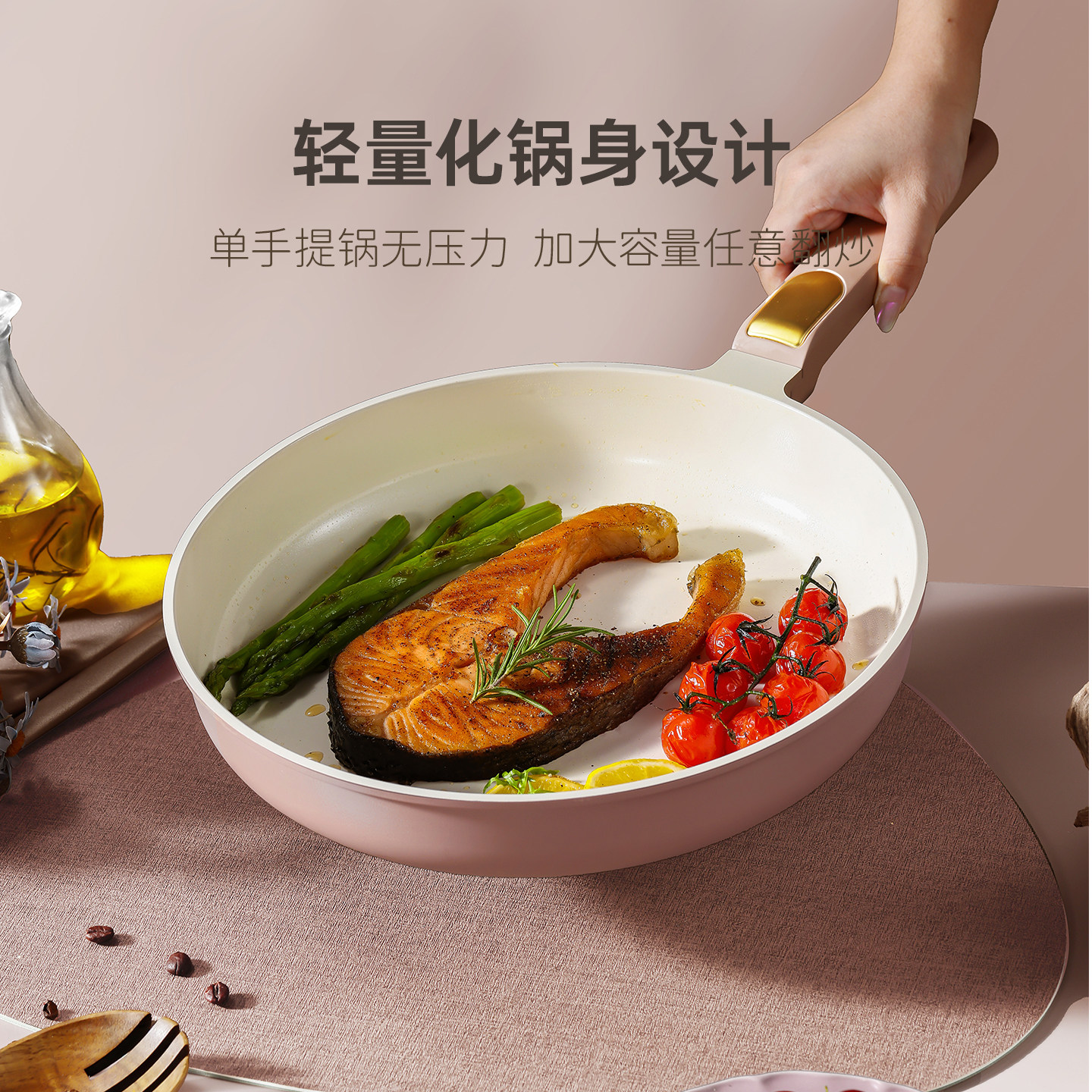 荣事达钛陶瓷无涂层不粘锅平底锅家用牛排电磁炉煤气灶专用深煎锅