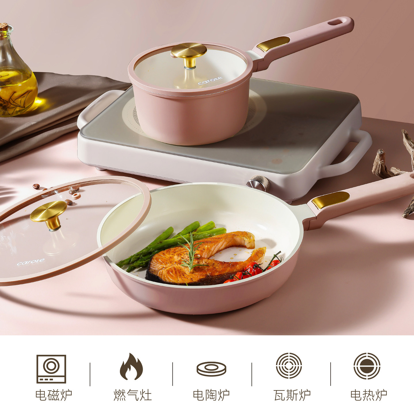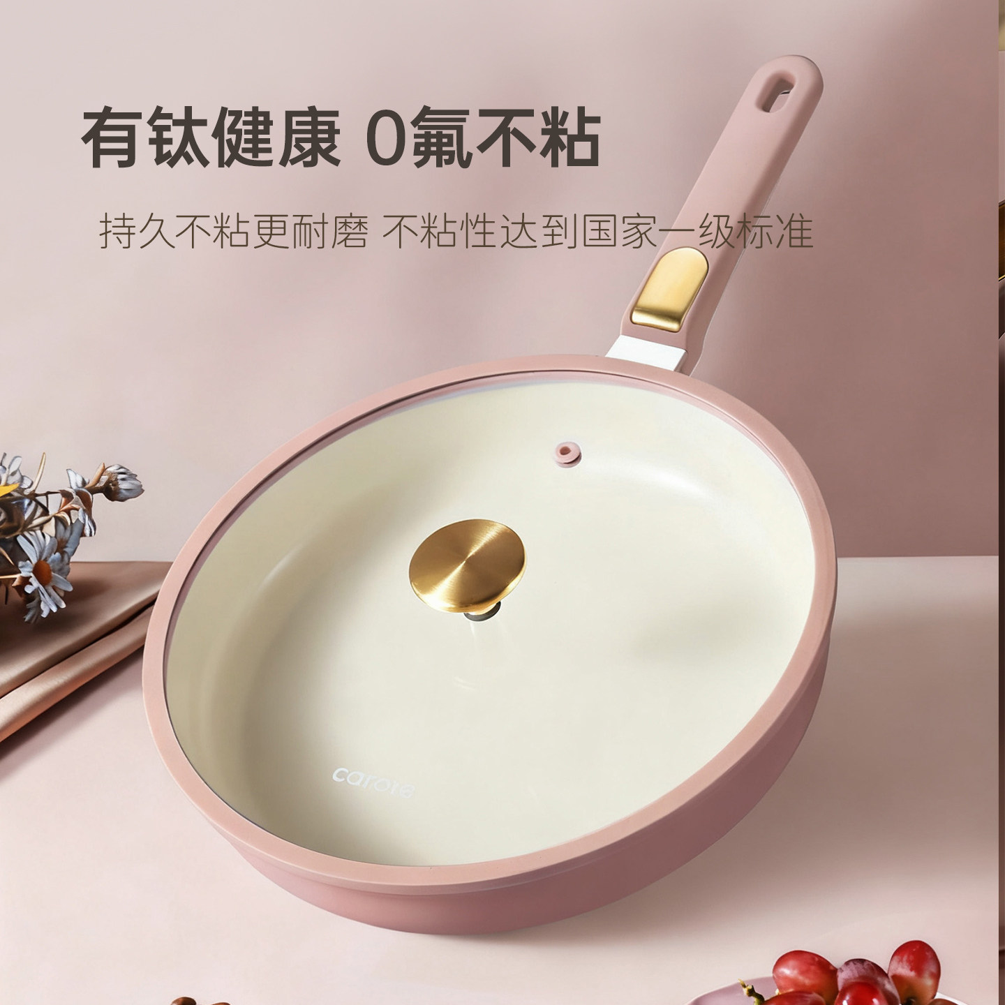 卡罗特平底锅不粘锅家用钛陶瓷牛排煎锅煎蛋锅煎饼锅专用锅电磁炉