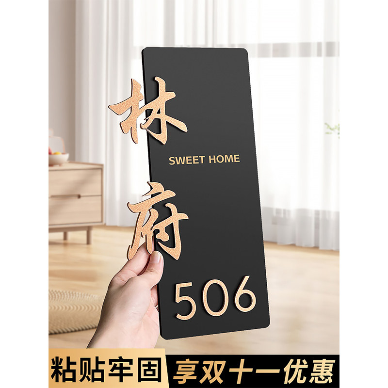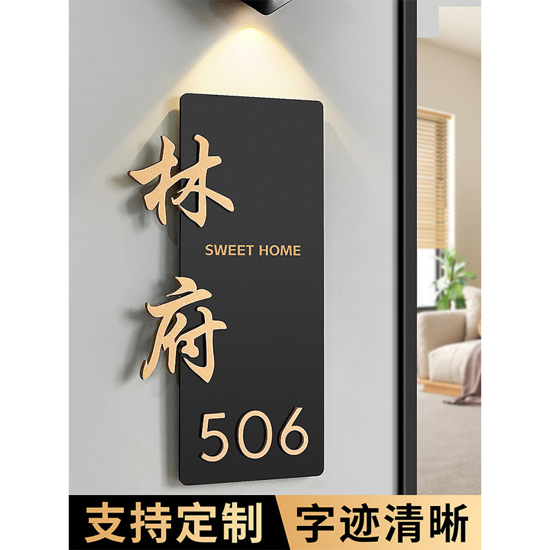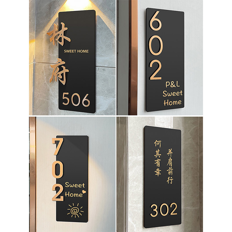 轻奢门牌感应灯号码牌家用定制创意高级感入户门装饰住宅挂牌订制酒店别墅民宿房间房号门口自粘亚克力数字贴