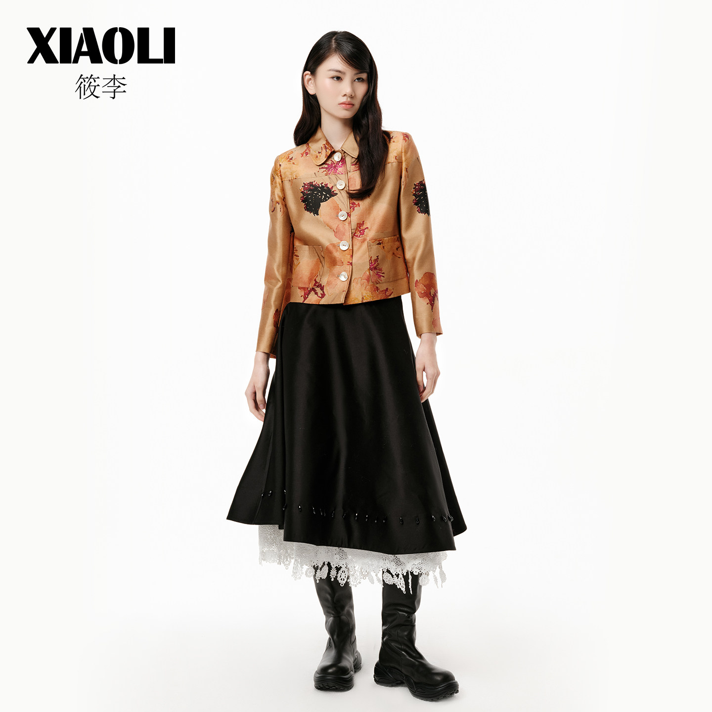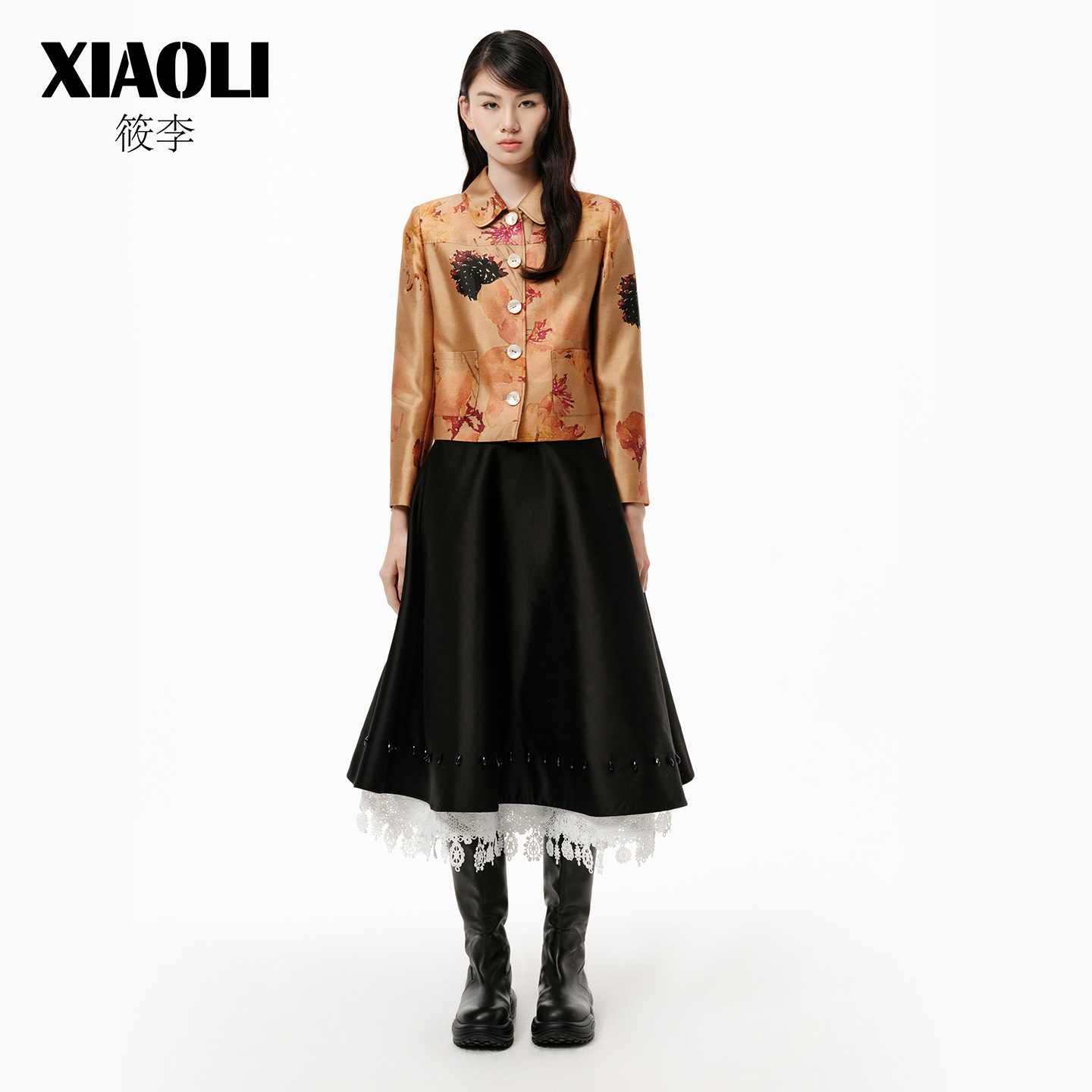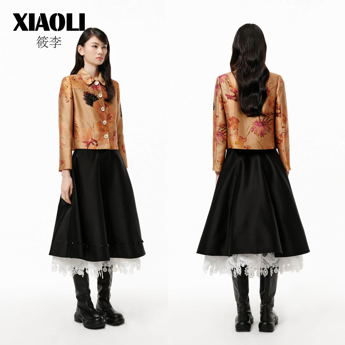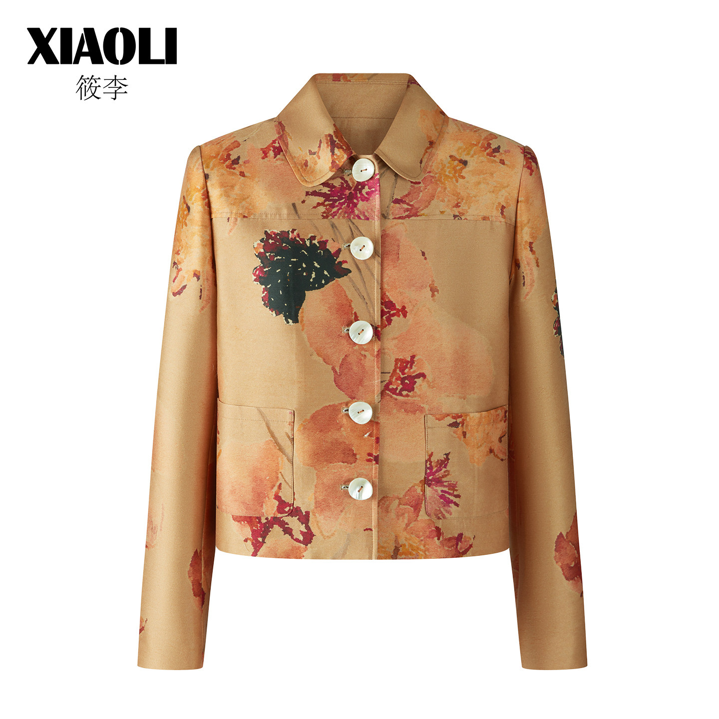 【XIAOLI筱李】优雅小香风翻领上衣卡其色印花短款外套25秋冬新品