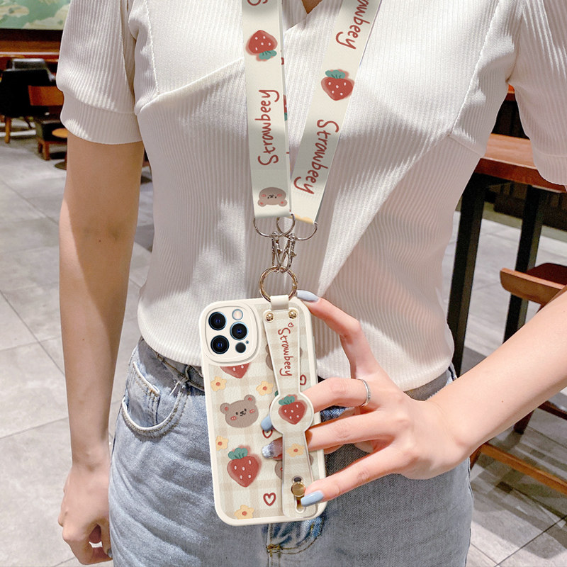适用iPhone15苹果13手机壳14女17新款12防摔11斜挎挂绳16Pro卡通猫max腕带8背带软硅胶plus哆啦a梦XR保护套XS