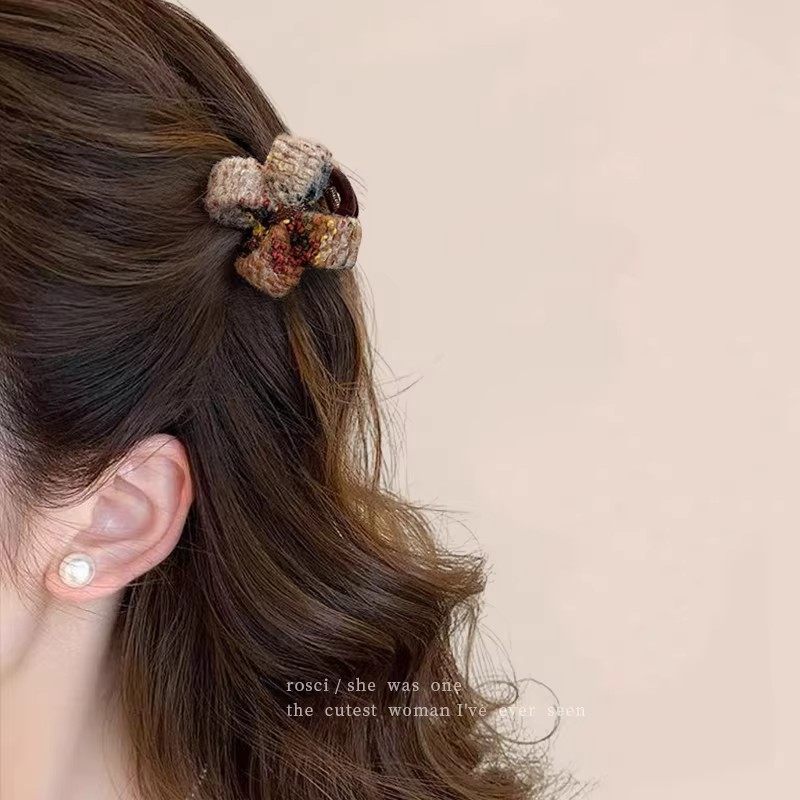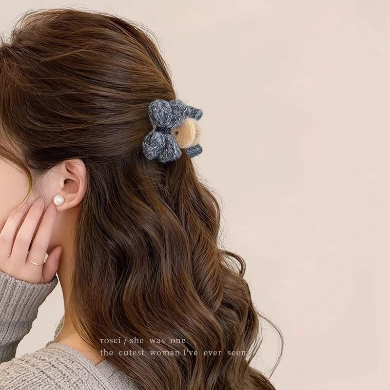 韩系晕染秋冬毛呢小号抓夹女高级感蝴蝶结公主头发夹2025新款发饰