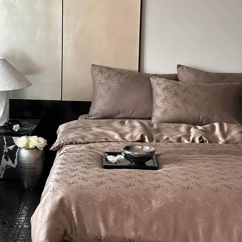 新款夏季凉感60s提花兰精天丝四件套真丝裸睡床品丝滑床单被套