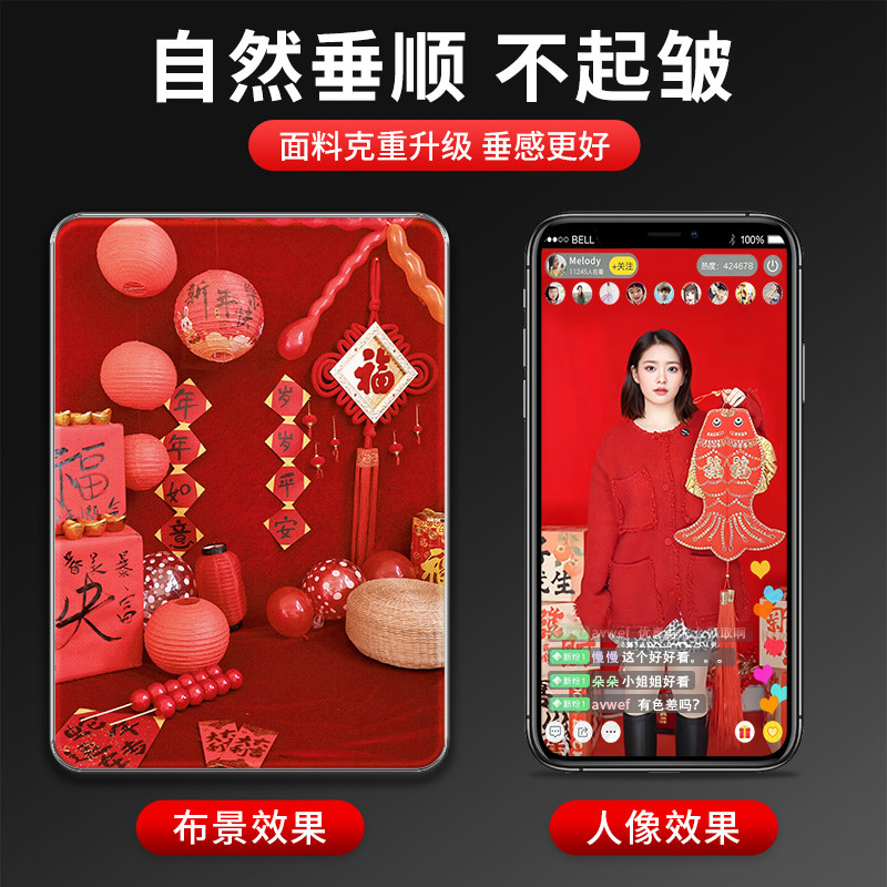 锐富图新年红色背景布拍照ins氛围拍摄道具直播间背景墙装饰儿童摄影幕布高级感复古宝宝新年写真挂布景摆件