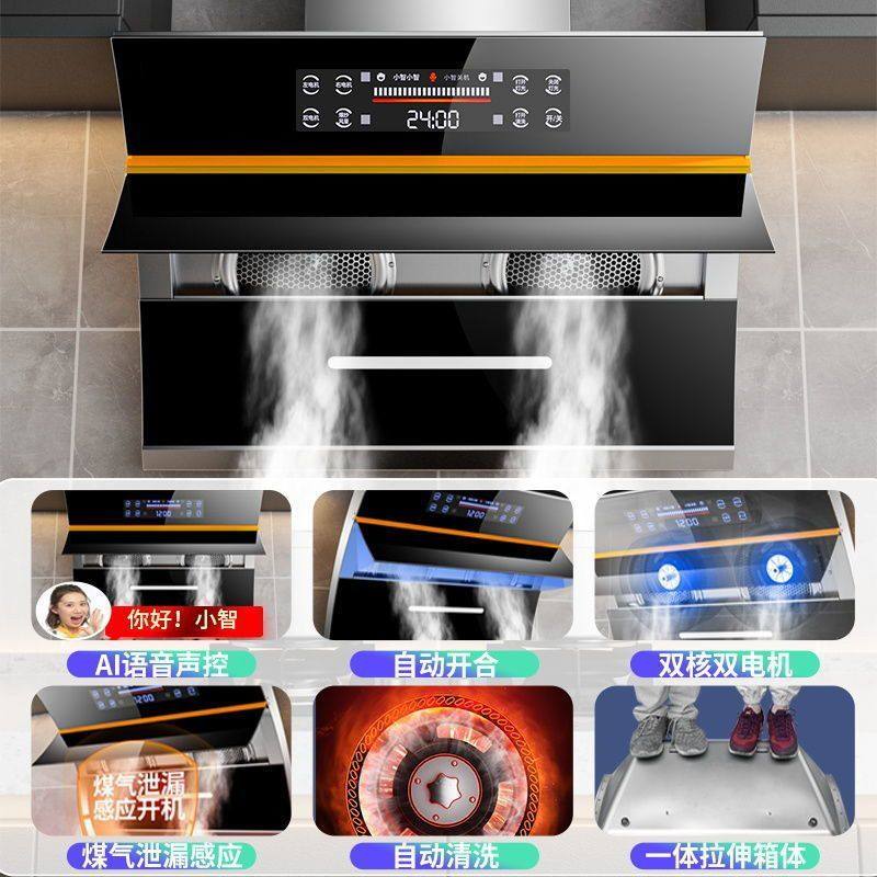 新美好太太油烟机厨房猛火双灶燃气灶套餐家用侧吸式两件组合套装
