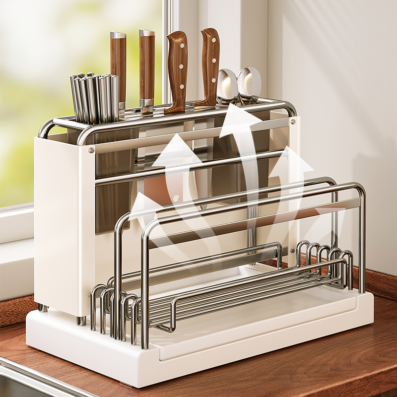 厨房刀架置物架多功能新款台面筷子筒菜板一体壁挂刀具收纳架沥水