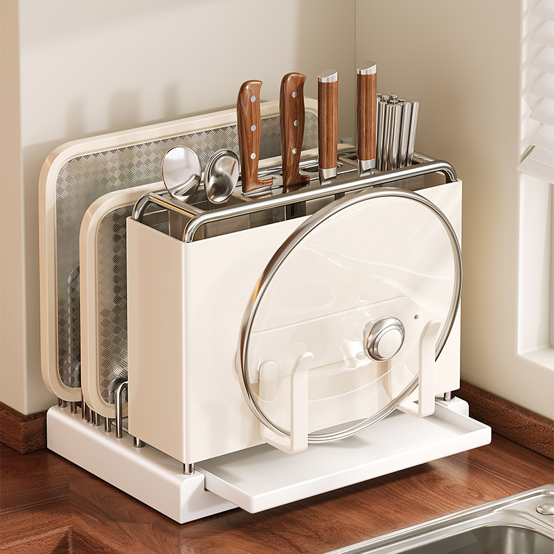 厨房刀架置物架2025新款刀座多功能筷子砧板架一体锅盖刀具收纳架
