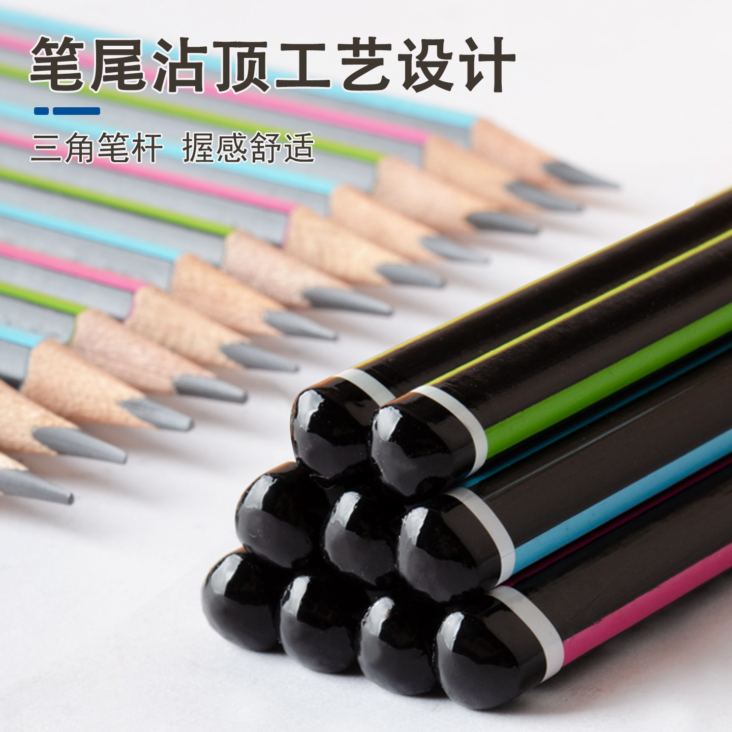 得力渐变书写铅笔小学生一二年级六角杆考试蓝色粉色2BHB无毒无铅