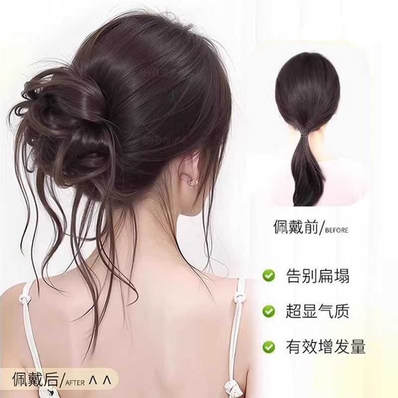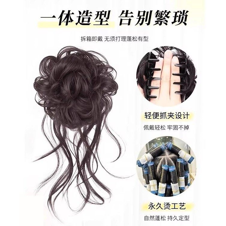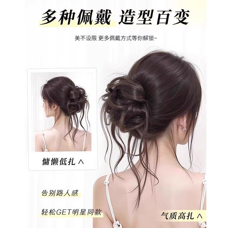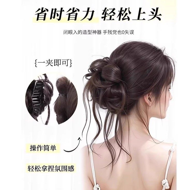 低扎丸子头假发鸡毛头抓夹盘发发包慵懒感造型头饰自然蓬松后脑勺