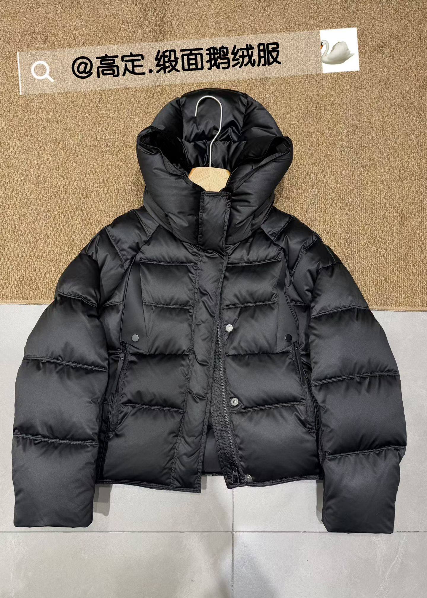 欧洲站2025新款冬缎面连帽红色90白鹅绒羽绒服女短款加厚保暖外套