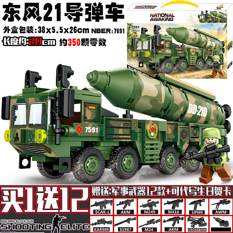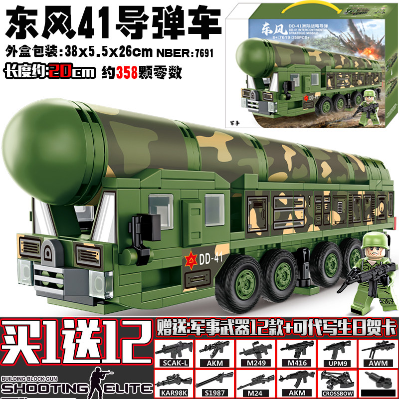 【亏本清】东风41导弹车坦克装甲车模型积木益智拼装军事儿童玩具